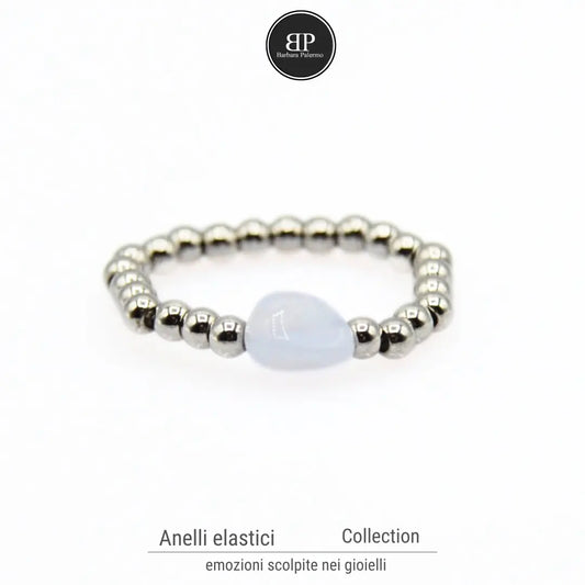 Anello Elastico con Ematite Blu Lucida Sfaccettata