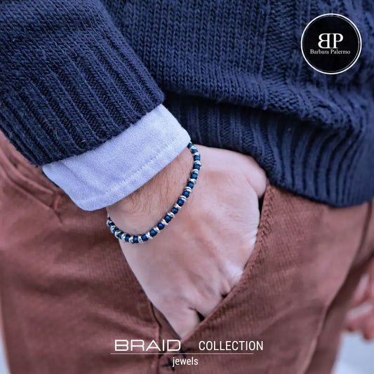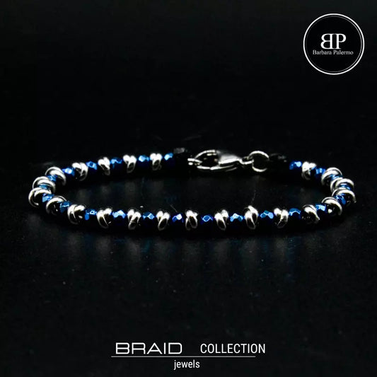 Bracciale nautico acciaio ed ematite Braid blu luccicante