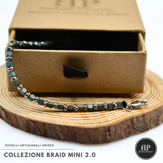 Bracciale Braid Mini 2.0 – sfere Ematite Verde Luccida sfaccettata