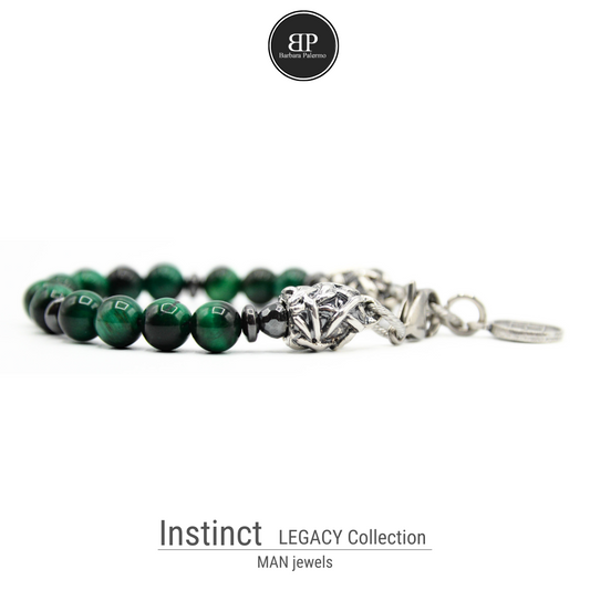 Bracciale Instinct- Occhio di tigre Verde e Argento