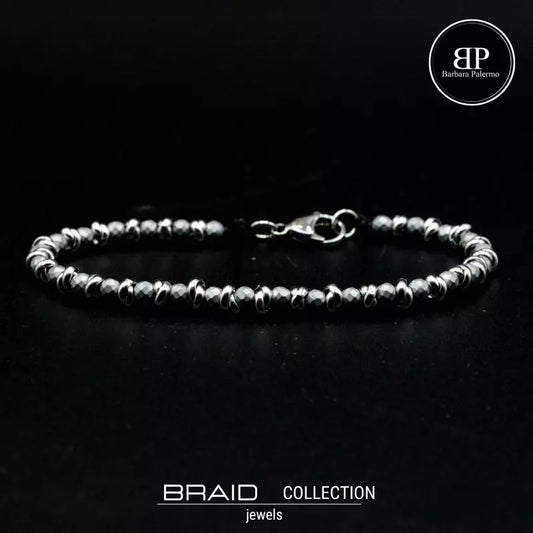 Bracciale nautico acciaio ed ematite Braid blu luccicante