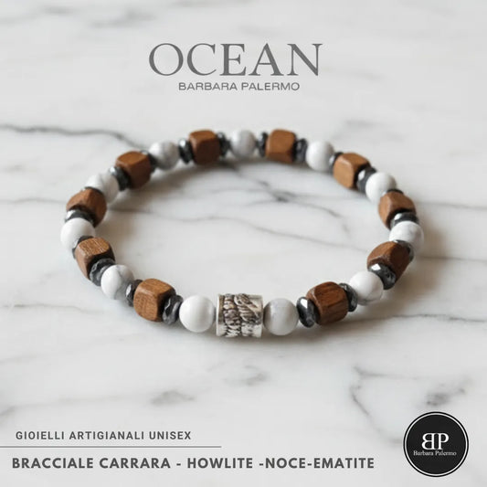 Bracciale Ocean Carrara – Howlite, Noce ed Ematite