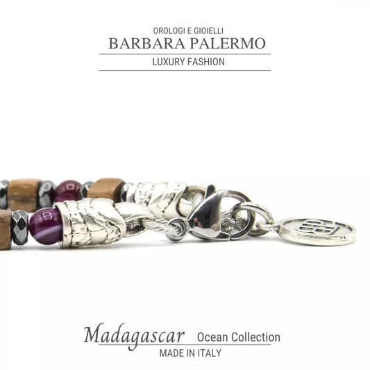 Bracciale Noce, Agata Fuxia ed Ematite Ocean Madagascar