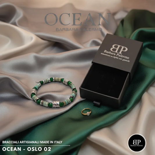 Bracciale Oslo Doppio Giro: Agata Verde, Howlite Verde Muschiato