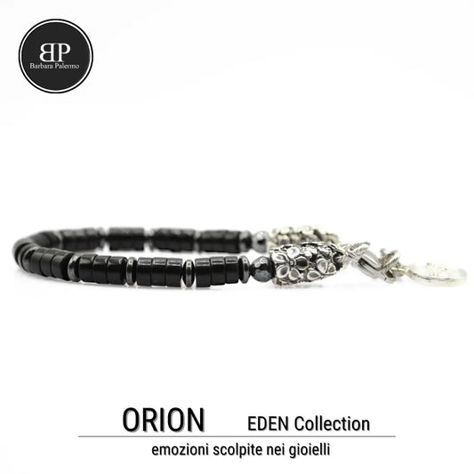 Bracciale Orion: Riflessi Stellari l'Eleganza dell'Onice nera e dell'Ematite