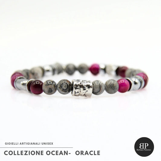 Bracciale Paesina occhio di tigre ed Ematite Argento Ocean California