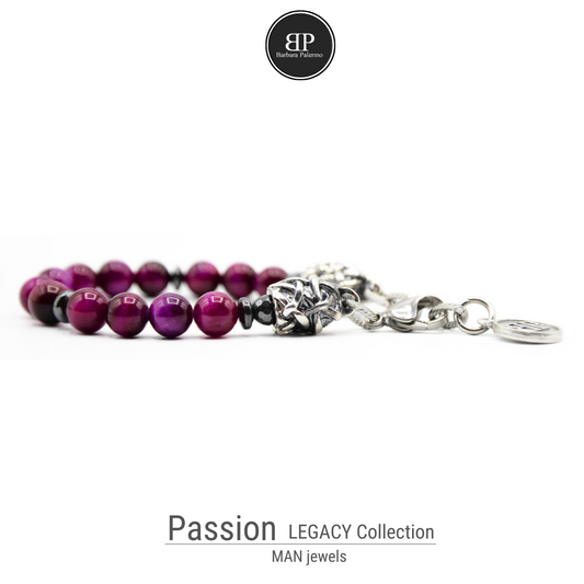 Bracciale PASSION occhio di tigre viola terminali Argento