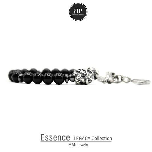 Bracciale onice nero uomo ESSENCE con terminali Argento