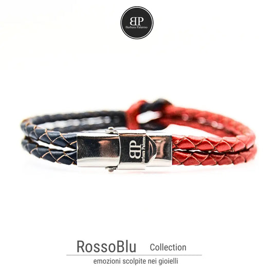 Bracciale Rosso Blu Bologna in Pelle Intrecciata