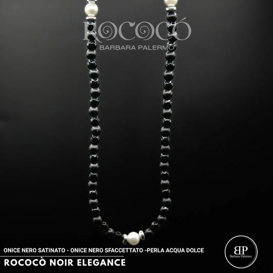 Rococò Noir Elegance – Collana Artigianale con Onice e Perla
