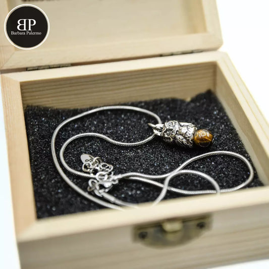 Vision: Collana Gufo con Occhio di Tigre Blu