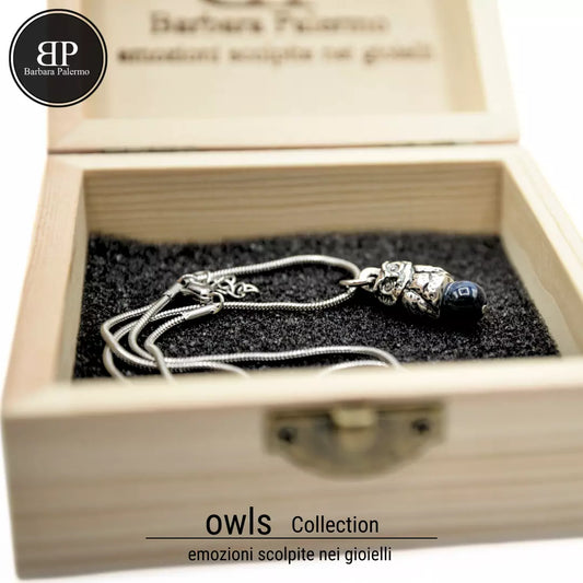 Eclipse: Collana Gufo con Pietra Onice Nero