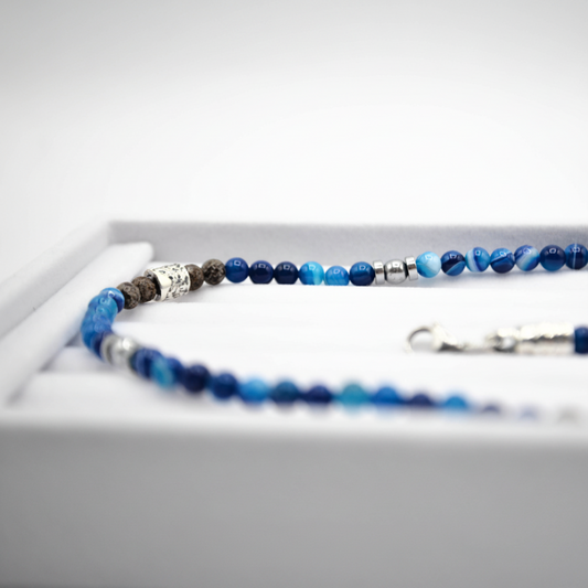 Miami collana Ocean con pietre agata blu-Ossidiana