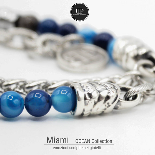 Bracciale Ossidiana Agata blu Ematite Argento Ocean Miami