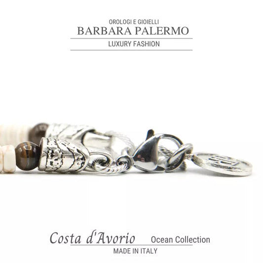 Barbara Palermo certifica quanto segue: In questa sezione del nostro negozio online potrai acquistare bracciali made in Italy originali. Bracciali con pietre Naturali unisex per uomo e per donna. La collezione Ocean prende il nome dal disegno delle onde riportate su monoliti e terminali.