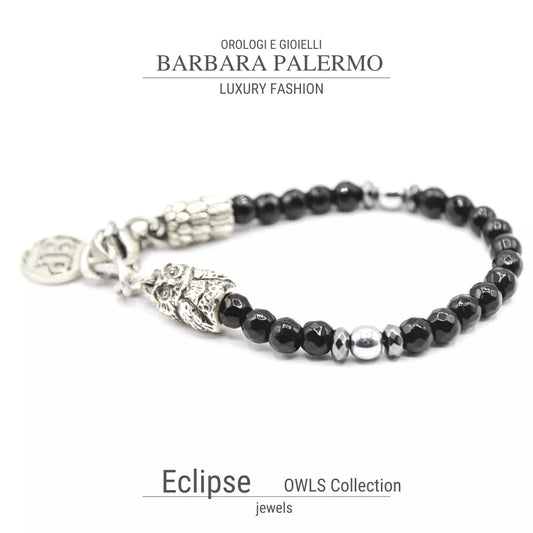Bracciale Eclipse - Onice Nera Sfaccettata & Gufo d'Argento