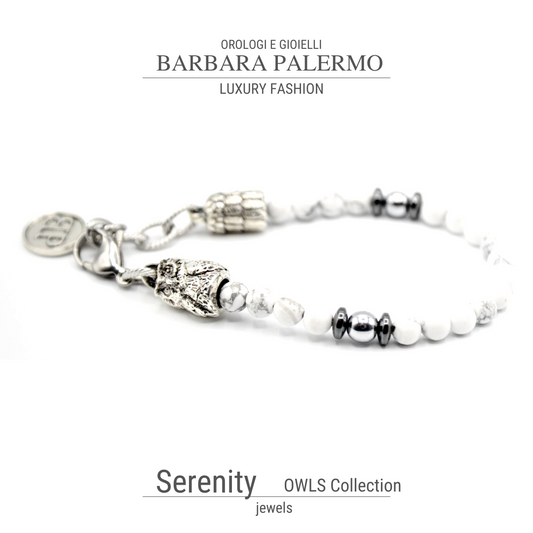 Serenity - Bracciale in Howlite e Ematite con Gufo