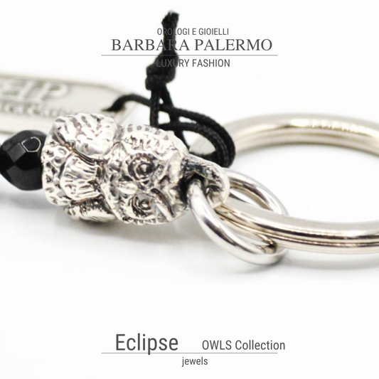 Porta chiave gufo in pietre onice nero sfaccettato Eclipse