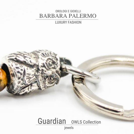 Guardian - Porta chiave con Gufo Placcato Argento e Occhio di Tigre