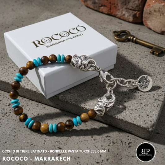 Bracciale Rococò Marrakech – Occhio di Tigre Satinato e Pasta Turchese