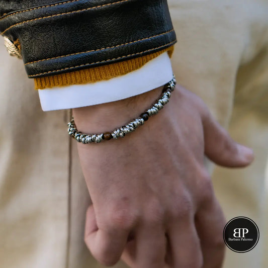 - 🛠️ Nodini in Acciaio 316L Anallergico e Inossidabile: Questi nodini di acciaio di 6 mm, accoppiati con una catena e un moschettone di acciaio, garantiscono durata e lusso in ogni bracciale con nodini in acciaio.