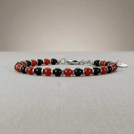 Bracciale Rosso Nero Sport – Agata Rossa e Onice Nero 4 MM