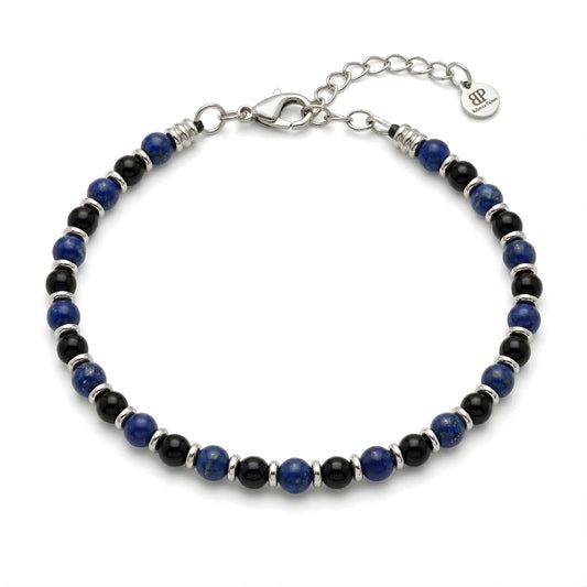 Bracciale Nero Azzurro Lapis Lazuli e Onice Nero 4 MM