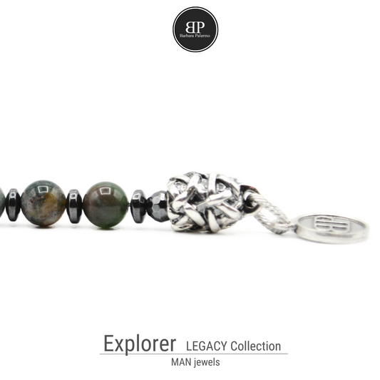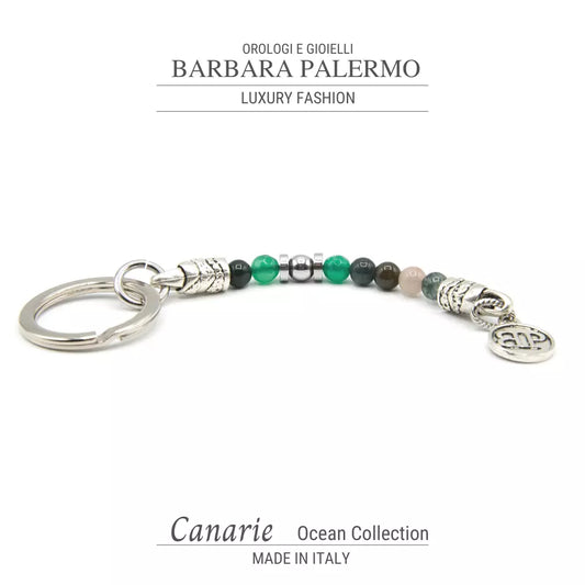 Portachiavi Agata verde e indiana Ematite argento Ocean Canarie