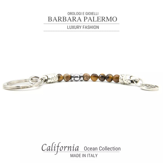 Portachiavi Paesina occhio di tigre ed Ematite Argento Ocean California