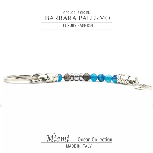 Portachiavi Ossidiana Agata blu Ematite Argento Ocean Miami