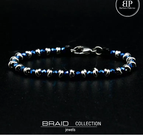 Armband Obsidian Blauer Achat Hämatit Silber Ozean Miami