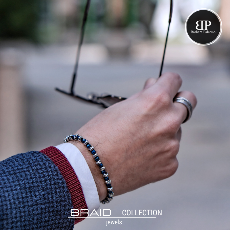 Braid-Kollektion: Armband aus Hämatit und nautischem Stahlfaden