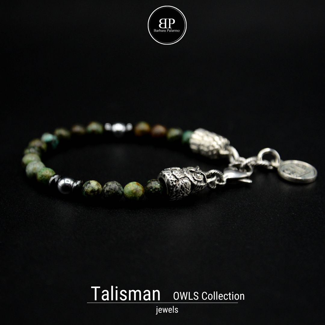 Talisman-Armband - mit Eule und afrikanischem Türkis