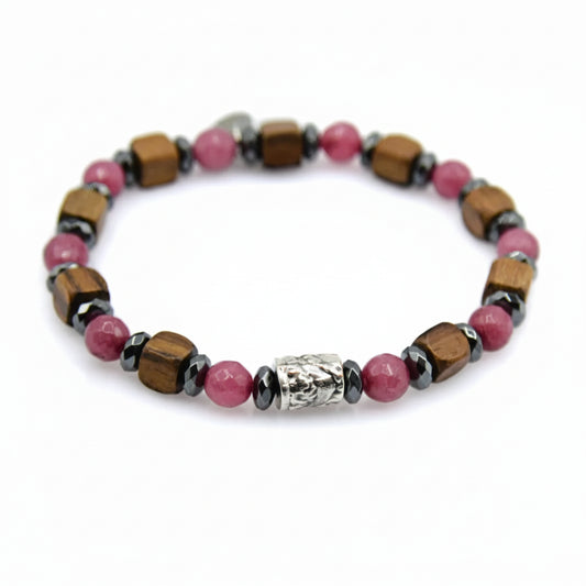 Walnuss-, Fuxia-Achat- und Hämatit-Ozean-Madagaskar-Armband