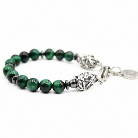 Instinkt-Armband – grünes und silbernes Tigerauge