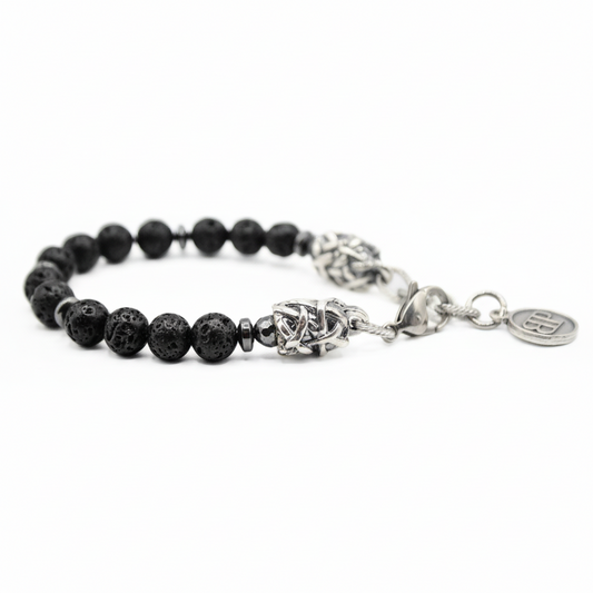 MAGMA und Silber Herrenarmband aus Lavasteinen