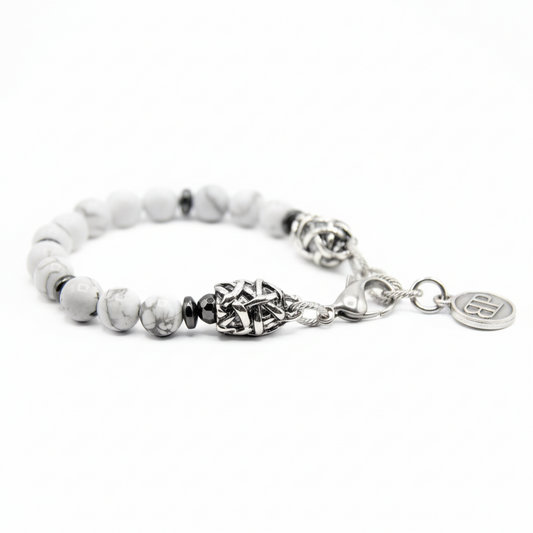 Zen-Armband – Howlith-Hämatit und Silberanschlüsse
