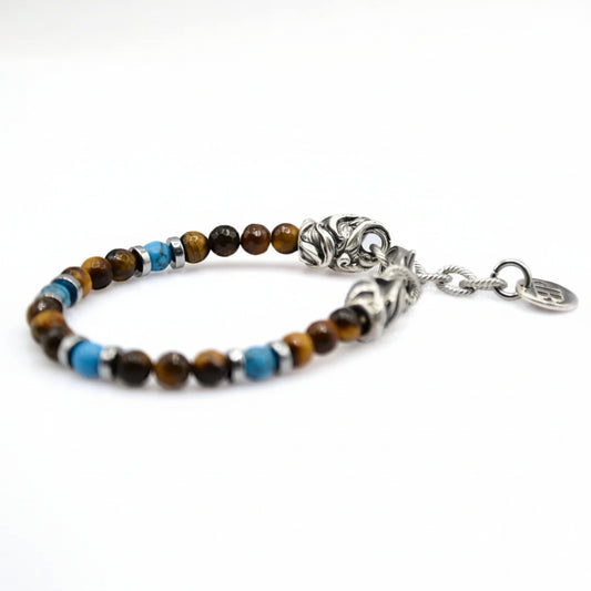 Rococò Marrakech Armband – Satiniertes Tigerauge und Türkispaste