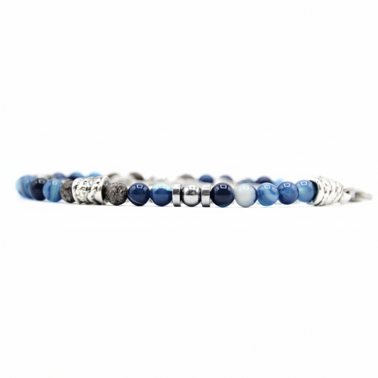 Armband Obsidian Blauer Achat Hämatit Silber Ozean Miami