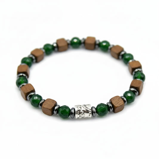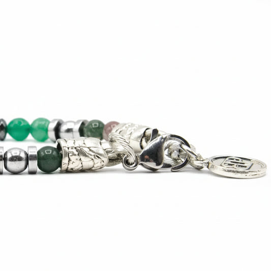 Ozean-Kanarienvogel-Armband aus grünem Achat und indischem Hämatit