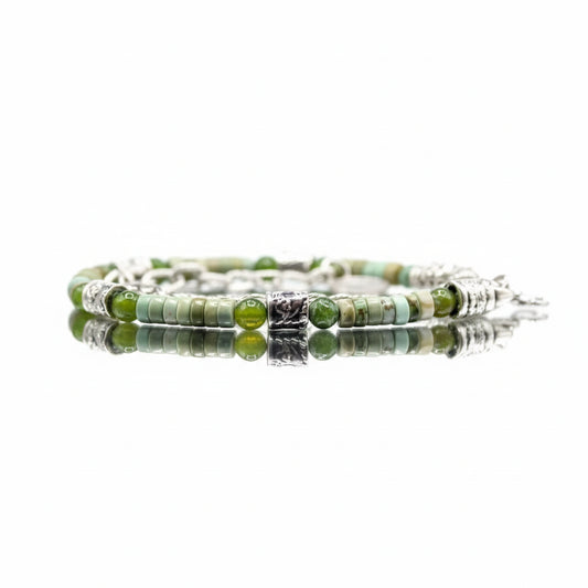 Armband Oslo Doppio Giro: Grüner Achat, Moosgrüne Howlith.