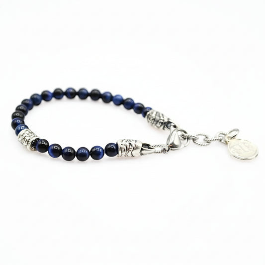 Armband Obsidian Blauer Achat Hämatit Silber Ozean Miami