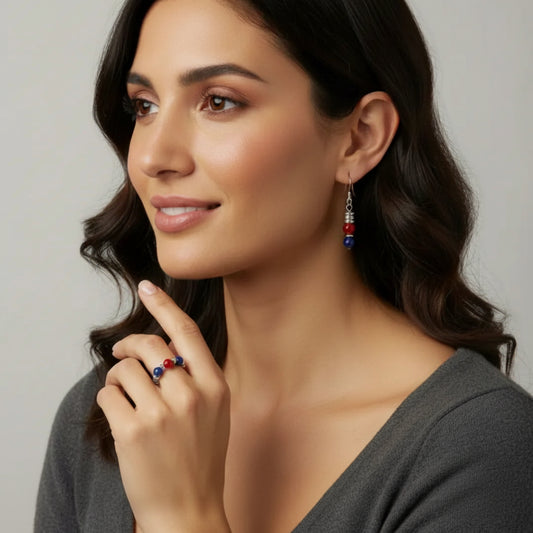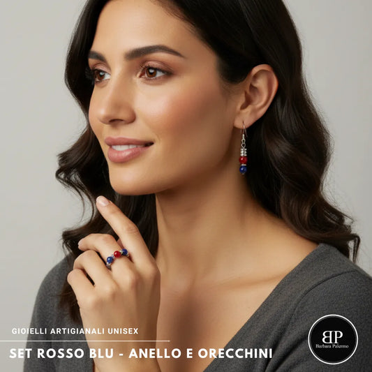 ROTES UND BLAUES SET – RING UND OHRRINGE