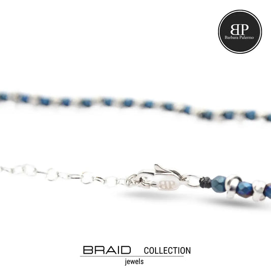 Geflochtenes nautisches Armband aus nachtblauem Stahl und Hämatit