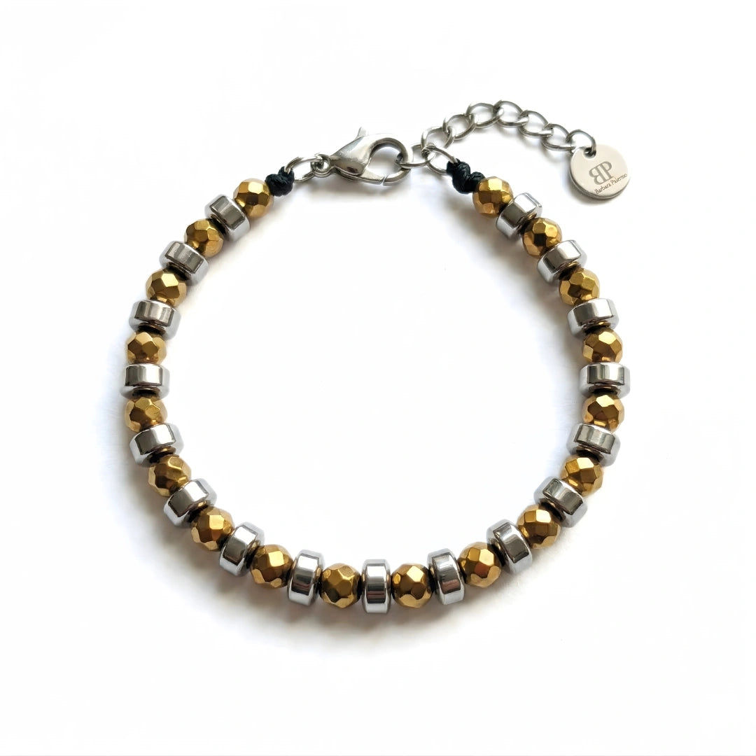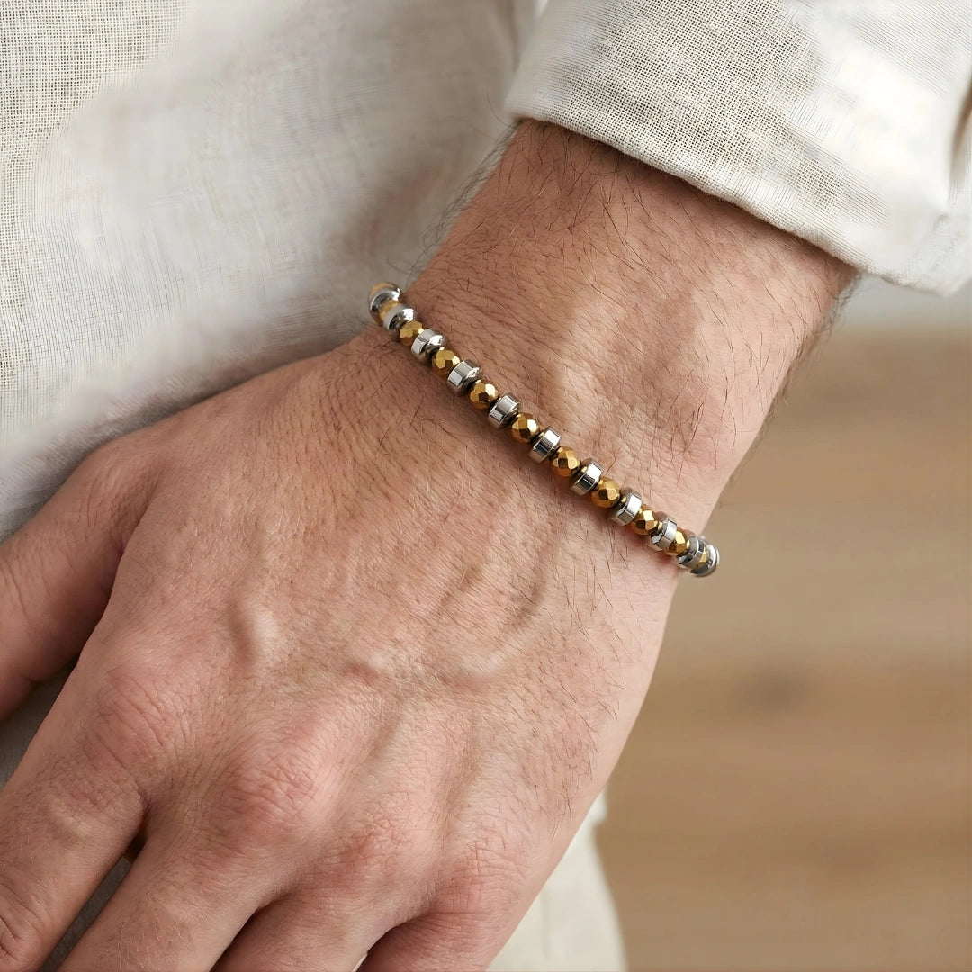 La tonalità oro dell’ematite dona al bracciale una presenza luminosa ma raffinata. Perfetto per chi desidera un accessorio elegante che rimanga comunque moderno e minimal.