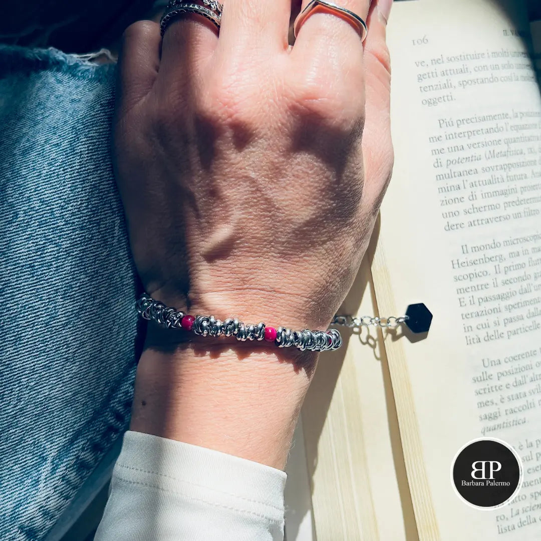 📏 Adattabilità: Moschettone e catena in acciaio 316 L rendono il bracciale regolabile da 18 a 24 cm, ideale per polsi da 16 a 24 cm.