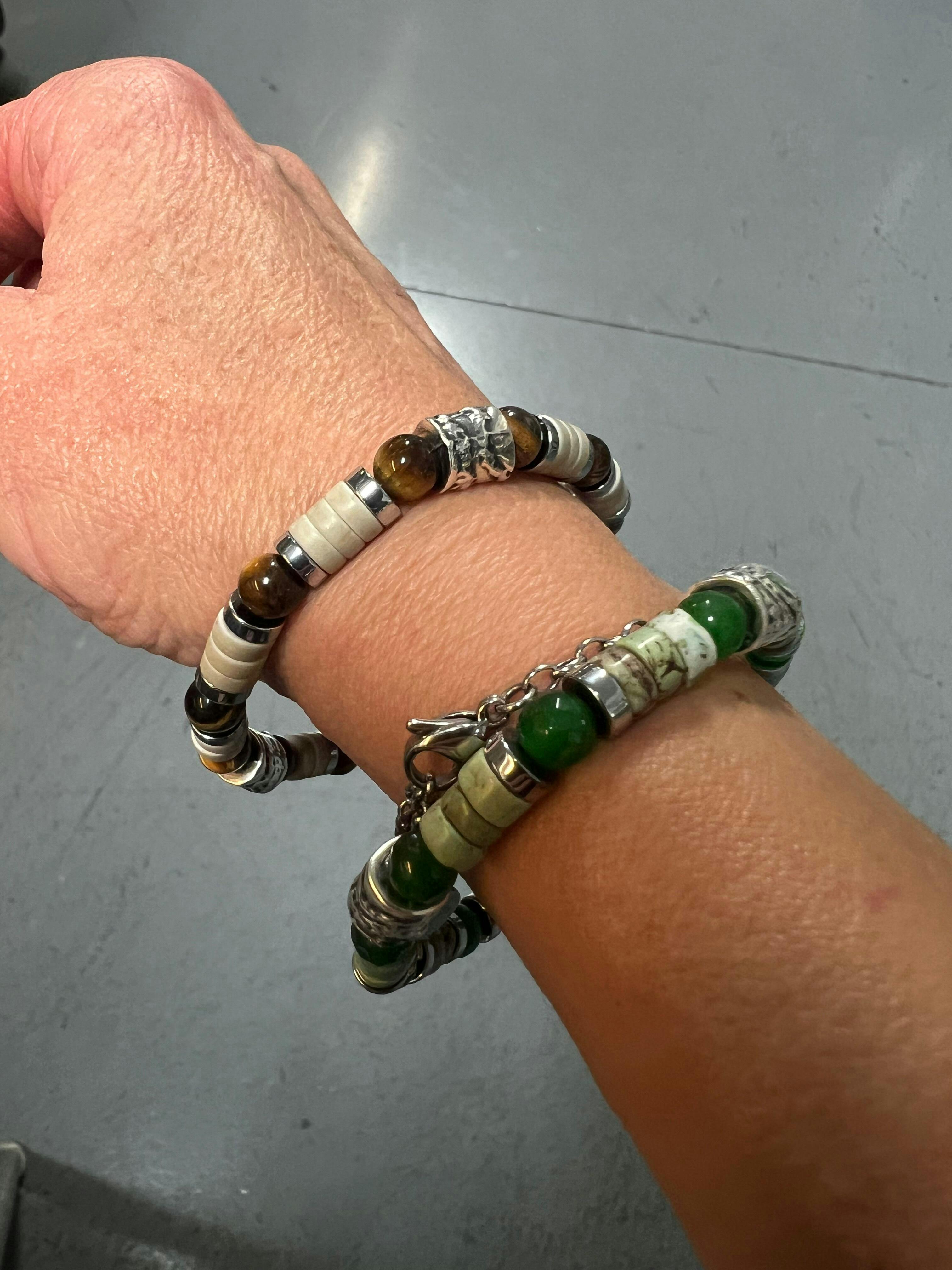 Un bracciale dal design elegante e deciso, che combina la forza delle pietre naturali alla raffinatezza degli inserti artigianali.