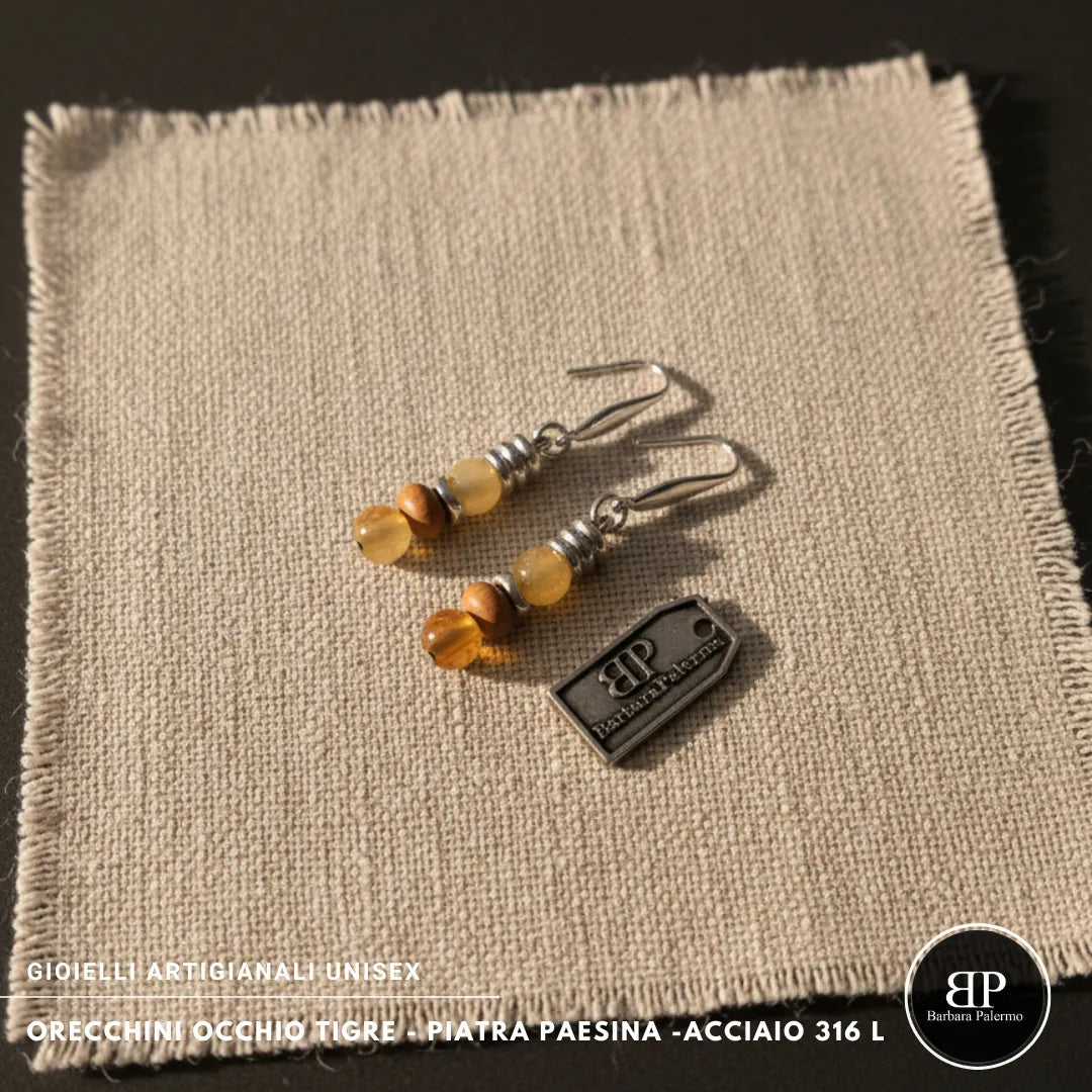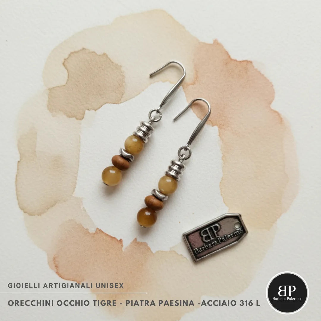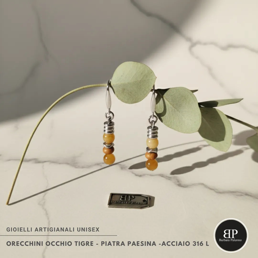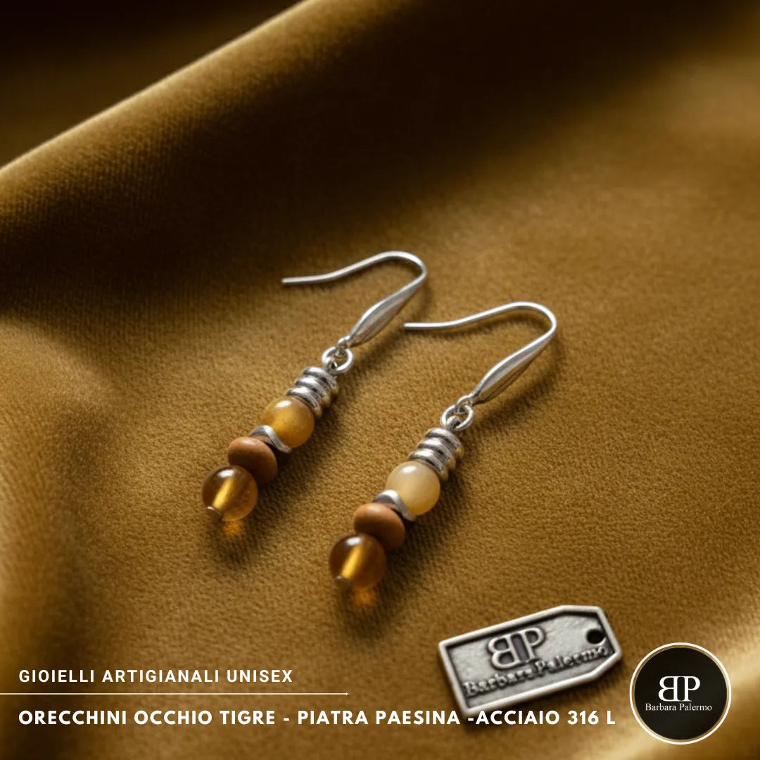 💛 Acquista ora gli Orecchini Occhio di Tigre e Pietra Paesina e completa i tuoi look con stile autentico!