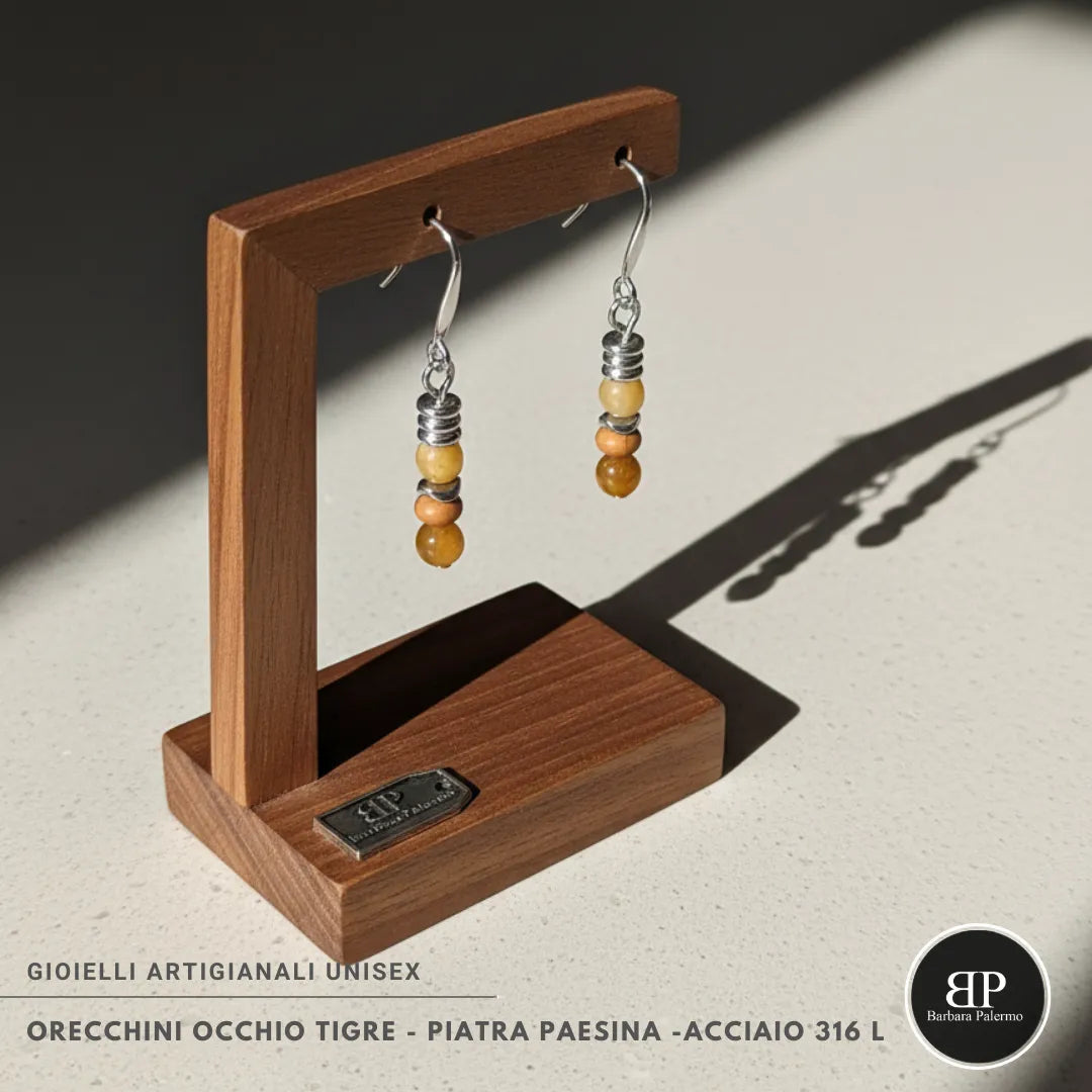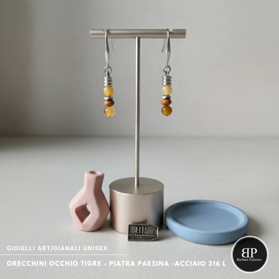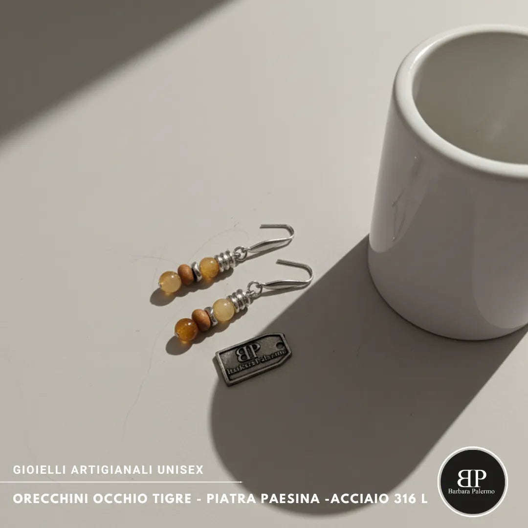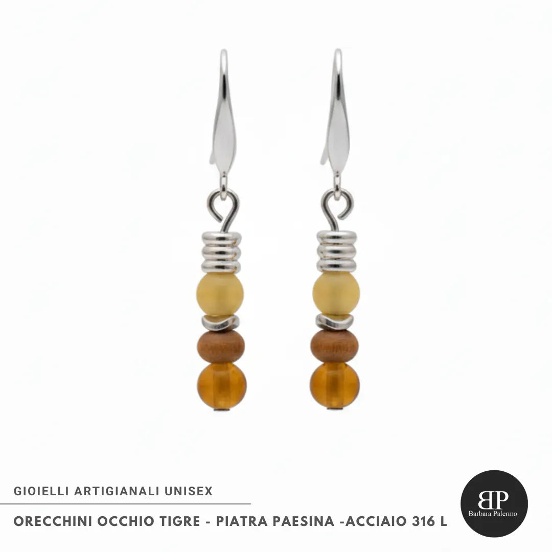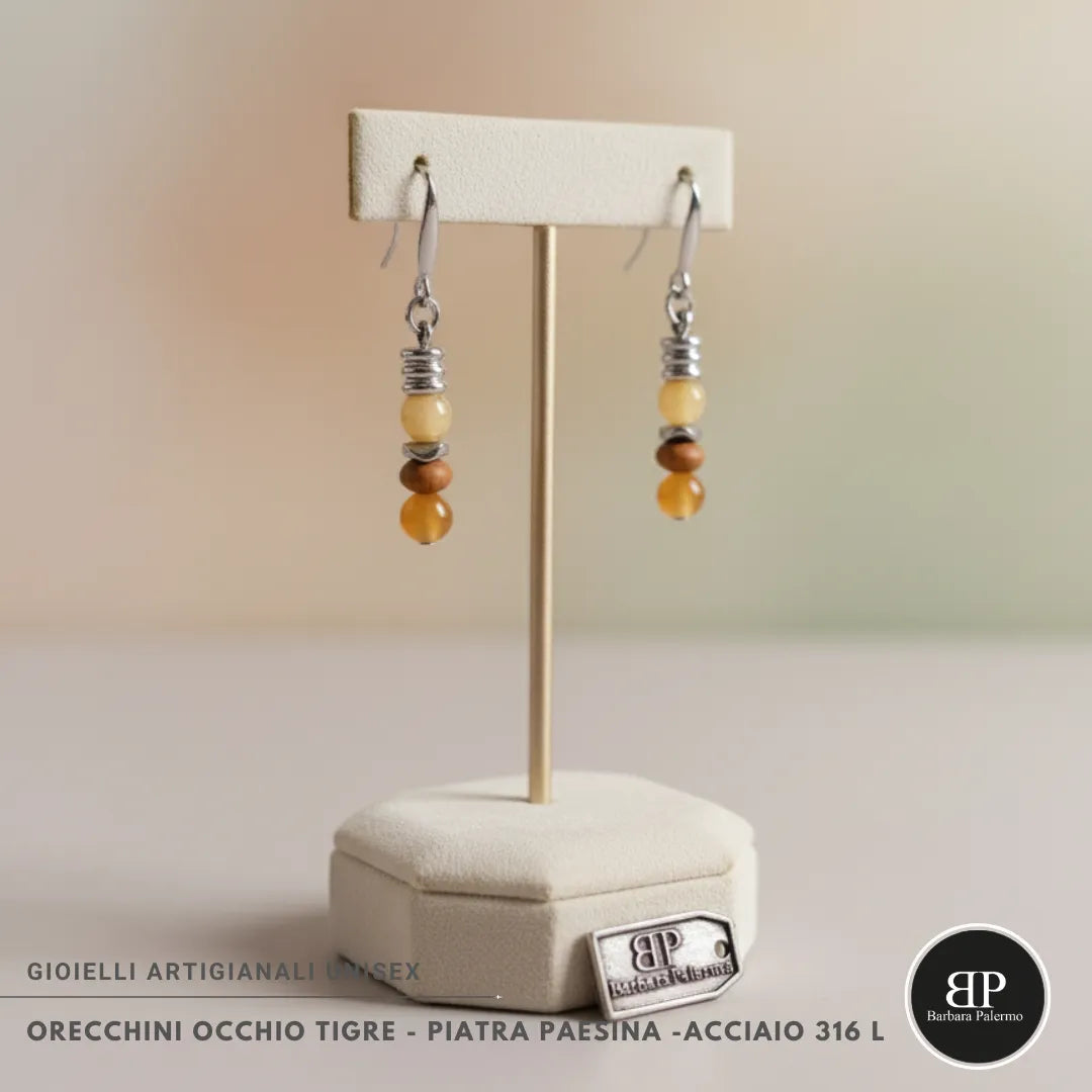 💛 Acquista ora gli Orecchini Occhio di Tigre e Pietra Paesina e completa i tuoi look con stile autentico!