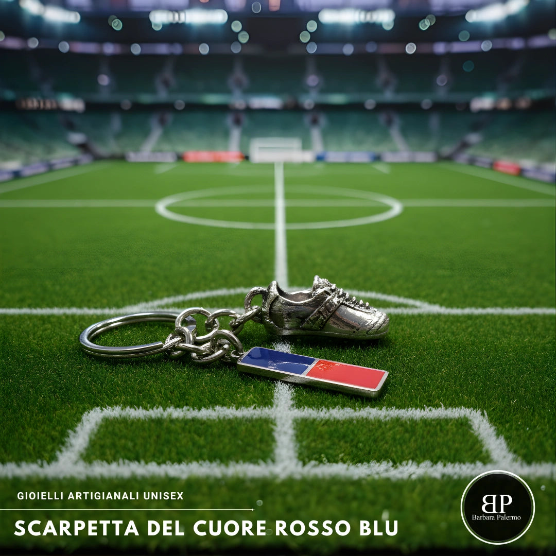 La Scarpetta del Cuore Rosso Blu è un accessorio unico, pensato per chi vive il calcio con il cuore e desidera portare sempre con sé i colori della propria squadra.